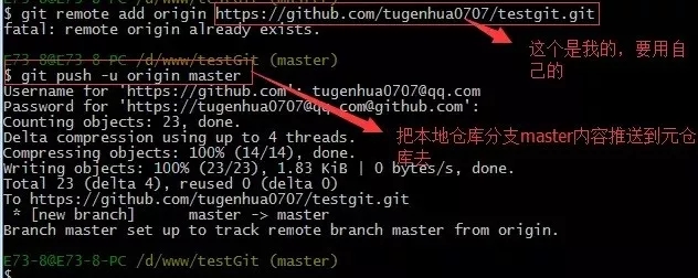 git remote add origin https://github.com/tugenhua0707/testgit.git
