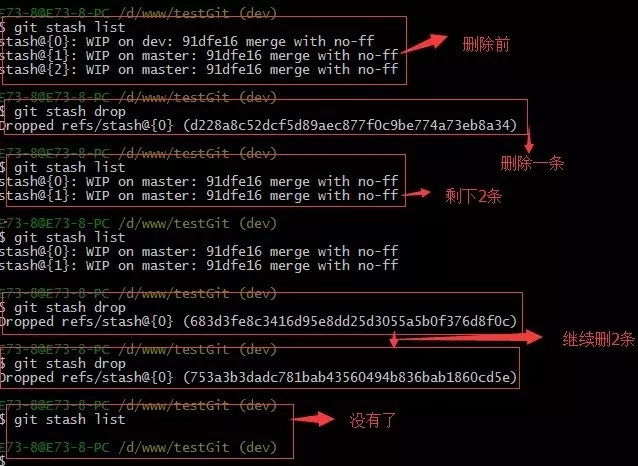 另一种方式是使用git stash pop,恢复的同时把stash内容也删除了。