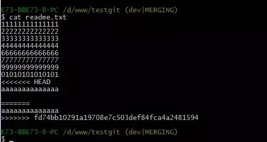 首先我们先来查看下readme.txt内容,接着添加内容77777777,如下: