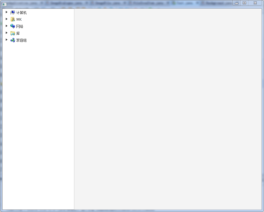 public class Test extends Application {public static File ROOT_FILE = FileSystemView.getFileSystemView().getRoots()[0];@Overridepublic void start(Stage stage) {HBox hBox = new HBox();TreeView<String> treeView = new TreeView<>();FileTreeItem fileTreeItem = new FileTreeItem(ROOT_FILE, f -> {File[] allFiles = f.listFiles();File[] directorFiles = f.listFiles(File::isDirectory);List<File> list = new ArrayList<>(Arrays.asList(allFiles));list.removeAll(Arrays.asList(directorFiles));return list.toArray(new File[list.size()]);});treeView.setRoot(fileTreeItem);treeView.setShowRoot(false);treeView.setMinWidth(250);hBox.getChildren().add(treeView);StackPane stackPane = new StackPane();stackPane.getChildren().add(hBox);Scene scene = new Scene(stackPane, 900, 700);stage.setScene(scene);stage.show();stage.setOnCloseRequest(e -> {System.exit(0);});}public static void main(String[] args) {launch(args);}}