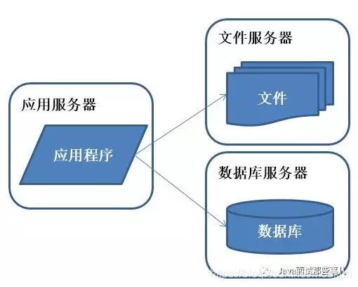 特征:应用程序、数据库、文件分别部署在独立的资源上。