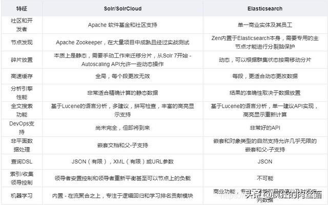 Solr 和 Elasticsearch 都在快速发展,所以,话不多说,先来看下它们的差异清单:
