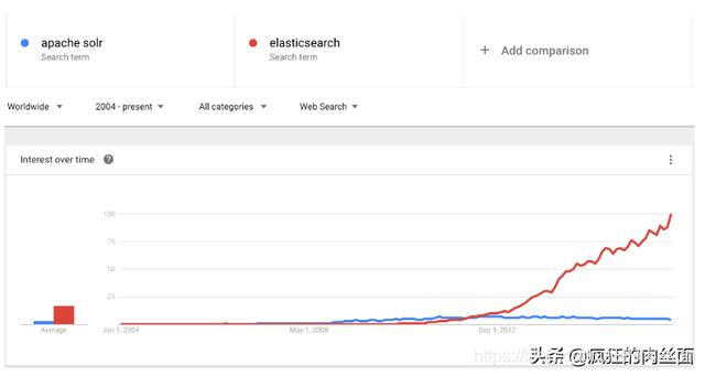 我们查看一下这两种产品的 Google 搜索趋势。谷歌趋势表明,与 Solr 相比,Elasticsearch 具有很大的吸引力,但这并不意味着 Apache Solr 已经死亡。