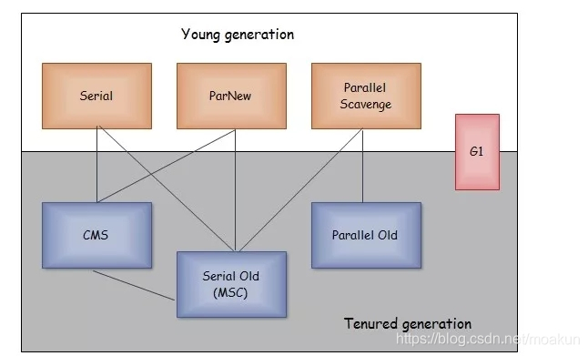 现代的垃圾收集器基本都是采用分代收集算法,其主要的思想是针对不同类型的对象采取不同的垃圾回收算法。可以将堆分成两块: