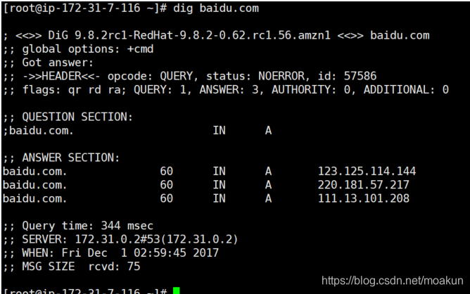 DNS负载提供域名到IP解析的过程,我们实例查看百度的域名解析其实是一对多的,这时候DNS服务器也就充当了负载均衡,很多域名运营商提供的智能dns以及多线解析都是利用了DNS负载均衡的技术,开源的BIND就可提供电信联通多线解析等强大的技术。
