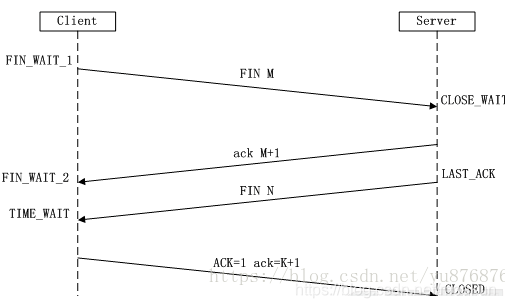 Server发送一个FIN,用来关闭Server到Client的数据传送,Server进入LAST_ACK状态。
