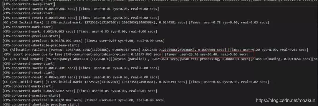设置了CMSMaxAbortablePrecleanLoops,并且执行的次数超过了这个值,这个参数的默认值是0;
