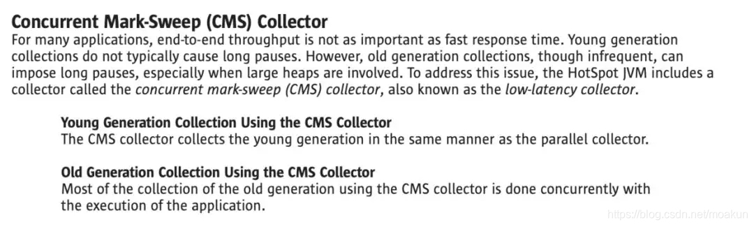 2、 我之前对CMS的理解,以为它是针对老年代的收集器。今天查阅了《Java性能优化权威指南》和《Java性能权威指南》两本书,确认之前的理解是错误的。