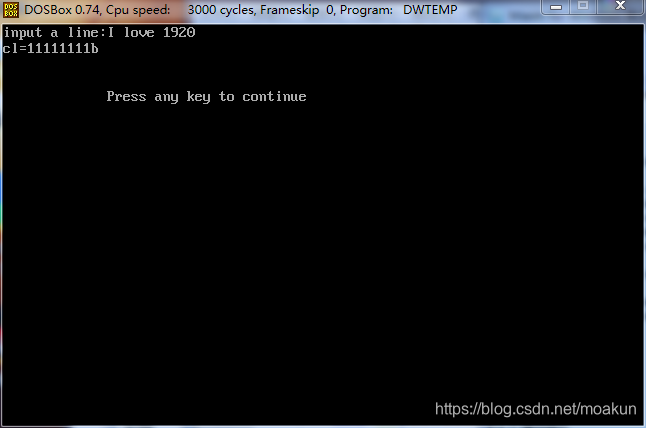 datas segmentSTRING_maxLength db 0ffhSTRING_Length db ?STRING db 100h dup(?)inputPrompt db 'input a line:$'outputPrompt db 'cl=$'nextLine db 0dh,0ah,'$'datas endsstacks segment stackdb 100h dup(?)stacks endscodes segmentassume cs:codes,ds:datas,ss:stacks