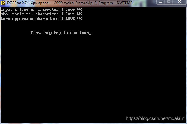 datas segmentoriginalCaseMaxLength db 0ffh,0originalCase db 100h dup(?)uppercase db 100h dup(?)inputPrompt db 'input a line of character:$'outputoriginalCasePrompt db 0dh,0ah,'show noriginal characters:$'outputUppercasePrompt db 0dh,0ah,'turn uppercase characters:$'