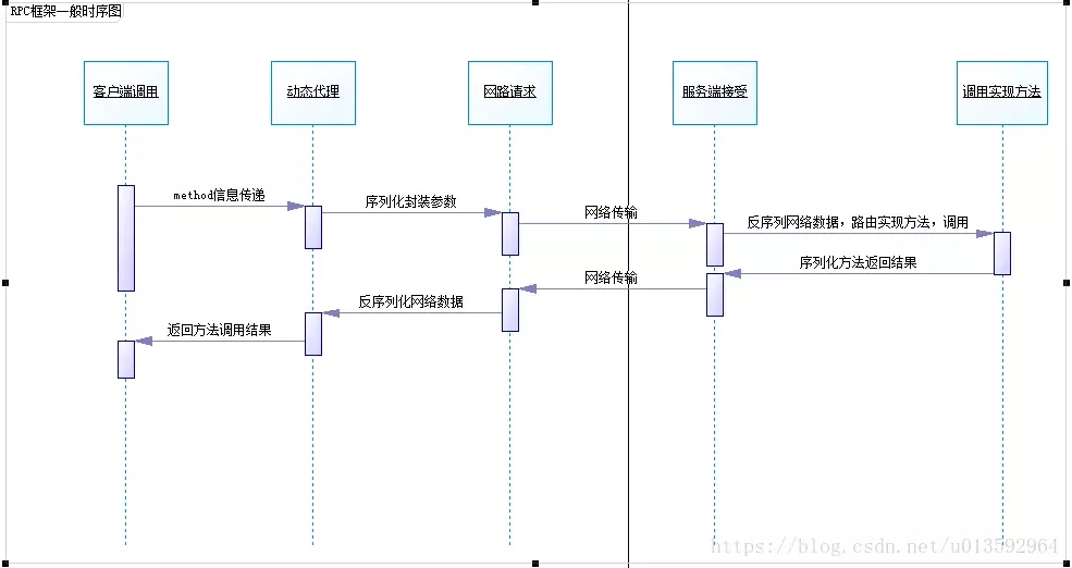 如上图所示,我将一个RPC调用流程概括为上图中5个流程,左边3个为客户端流程,右边两个为服务端流程。