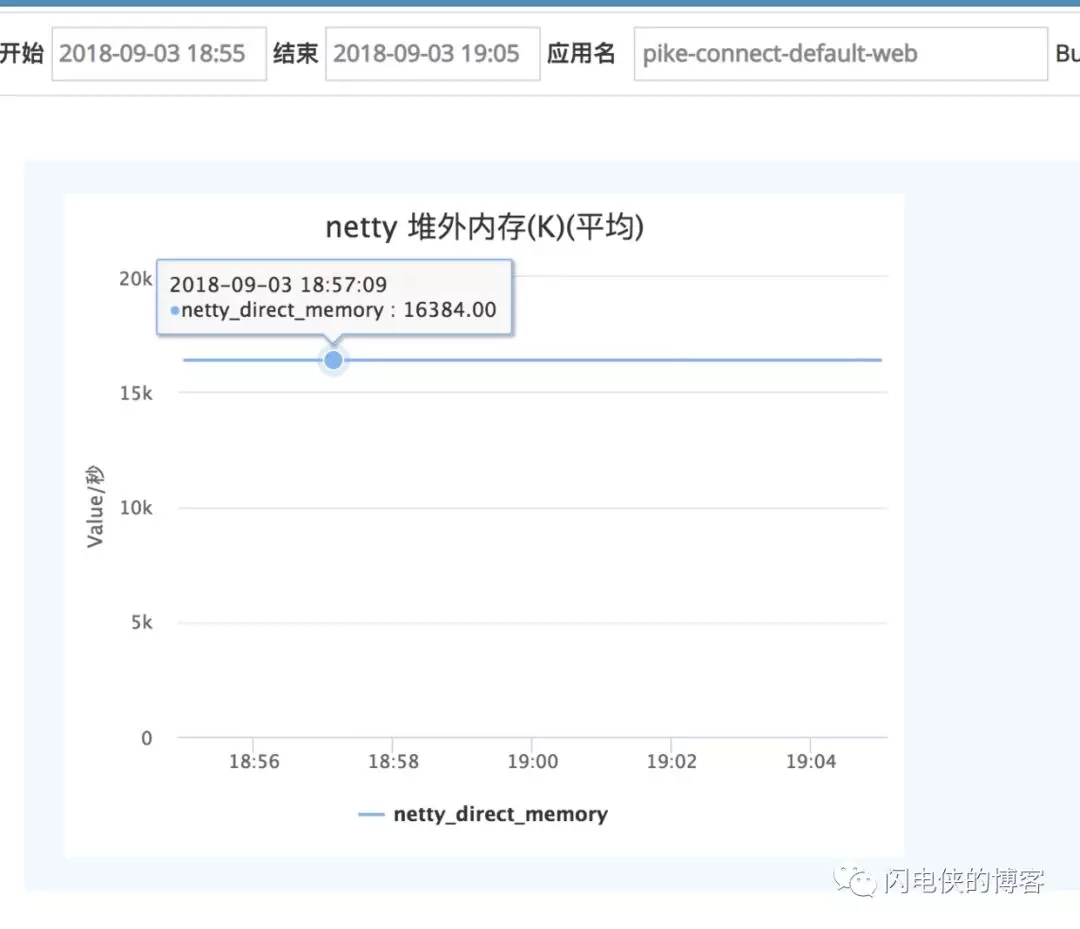代码上线之后,初始内存为 16384k(16M),这是因为线上我们使用了池化堆外内存,默认一个 chunk 为16M,不必过于纠结。