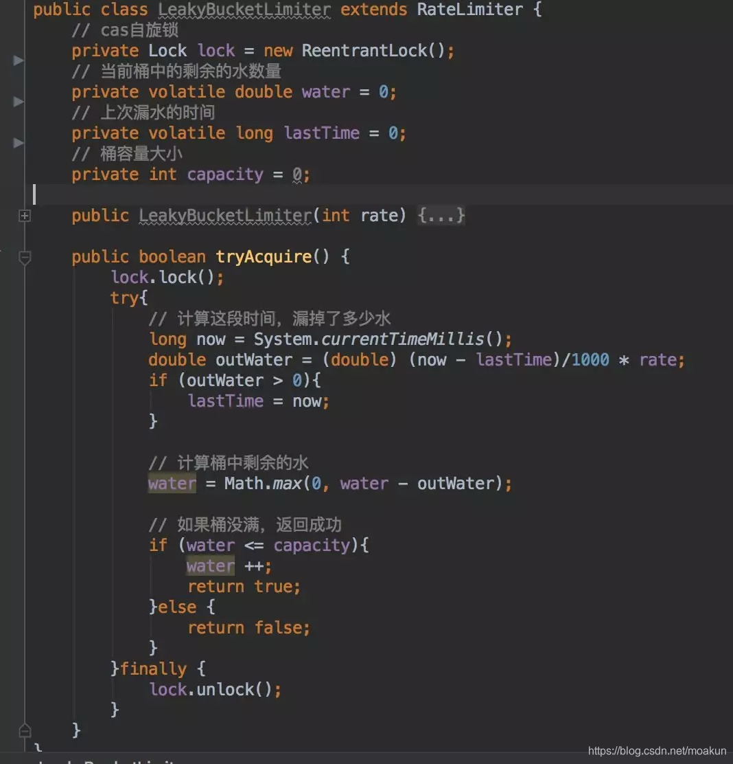 思路:桶为容器,一滴水为一请求。如果桶满了就拒绝请求,没满处理请求。