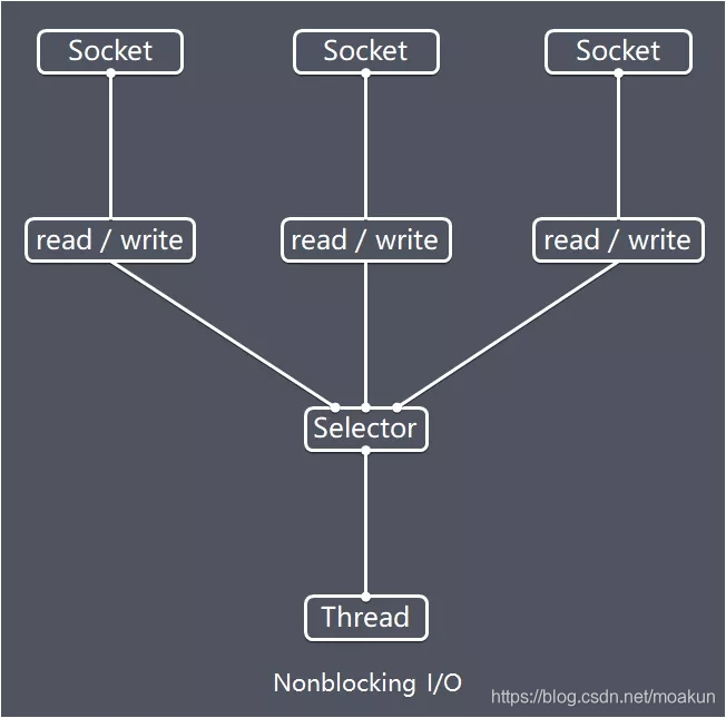 Netty的非阻塞I/O的实现关键是基于I/O复用模型,这里用Selector对象表示: