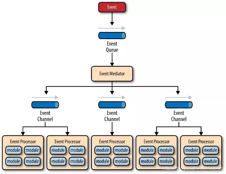事件处理器(event processor):实现业务逻辑,处理完成后会发出事件,触发下一步操作