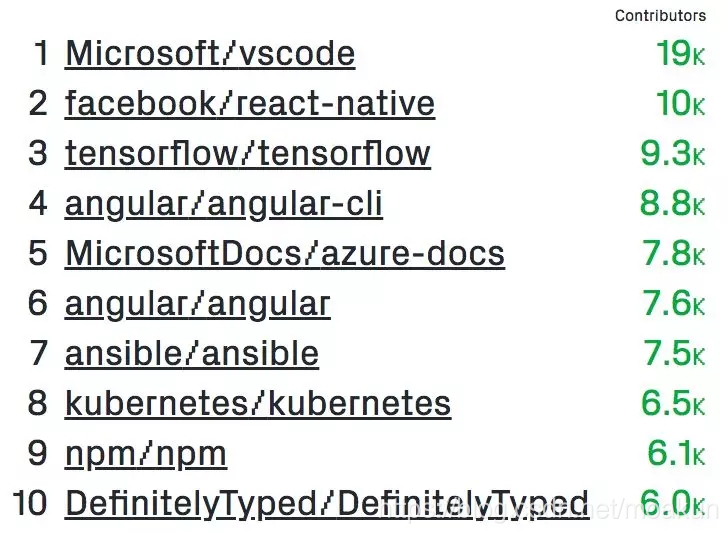 2018年GitHub贡献者最多的开源项目Top 10