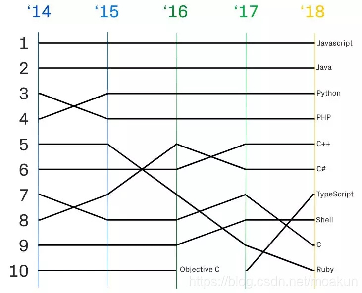 今年TypeScript登上了榜单第7名,它在去年首次进入前10。