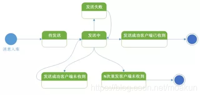 根据消息发送流程,可以得到消息在生命周期中状态的变迁如下图: