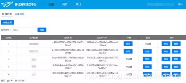 应用管理系统面向 App 开发人员,实现应用申请,推送服务配置,消息查询与管理,数据统计与分析。