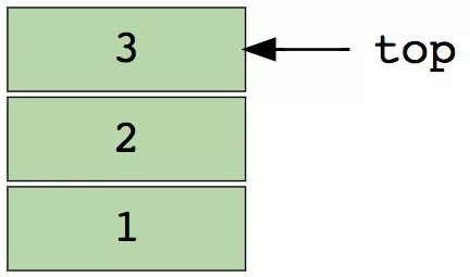 下图是包含三个数据元素(1,2和3)的栈,其中顶部的3将被最先移除: