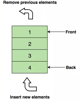 下图是包含四个元素(1,2,3和4)的队列,其中在顶部的1将被最先移除: