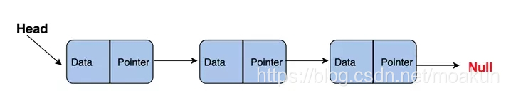 链表就像一个节点链,其中每个节点包含着数据和指向后续节点的指针。 链表还包含一个头指针,它指向链表的第一个元素,但当列表为空时,它指向null或无具体内容。