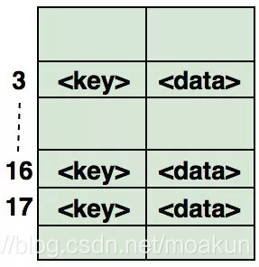 下图为如何在数组中映射哈希键值对的说明。该数组的索引是通过哈希函数计算的。