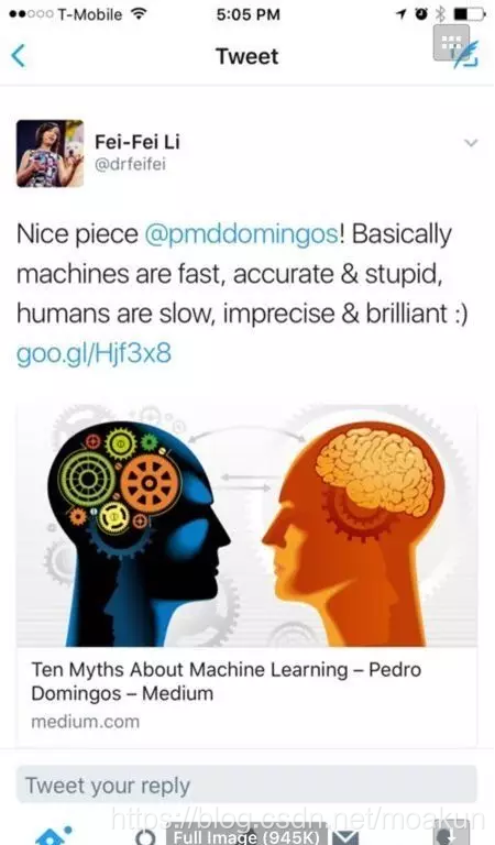 李飞飞说,机器是又快又准确,但是人类聪明呀!机器学习其实是在总结数据,预测未知。它具有高速的计算能力,我们可以通过不断的学习用它来识别各种植物、动物等,并提高准确率。