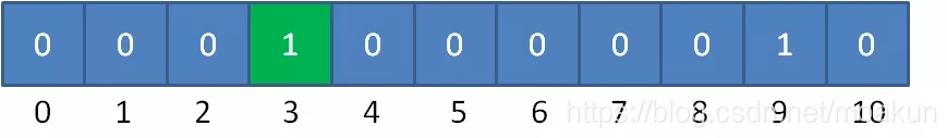 比如第一个整数是9,那么数组下标为9的元素加1: