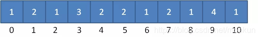 最终,数列遍历完毕时,数组的状态如下: