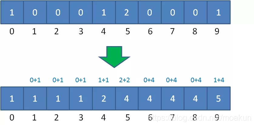 这是如何变形的呢?统计数组从第二个元素开始,每一个元素都加上前面所有元素之和。