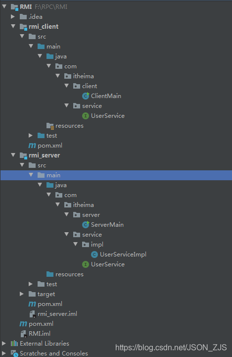 import java.rmi.registry.LocateRegistry;public class ServerMain {public static void main(String[] args) throws RemoteException, AlreadyBoundException, MalformedURLException {//启动RMI注册服务,指定端口号LocateRegistry.createRegistry(8888);//创建要被访问的远程对象的实例UserService userService = new UserServiceImpl();//将远程对象实例注册到RMI注册服务器上Naming.bind("rmi://127.0.0.1:8888/UserServer", userService);System.out.println("服务端启动中………………");}