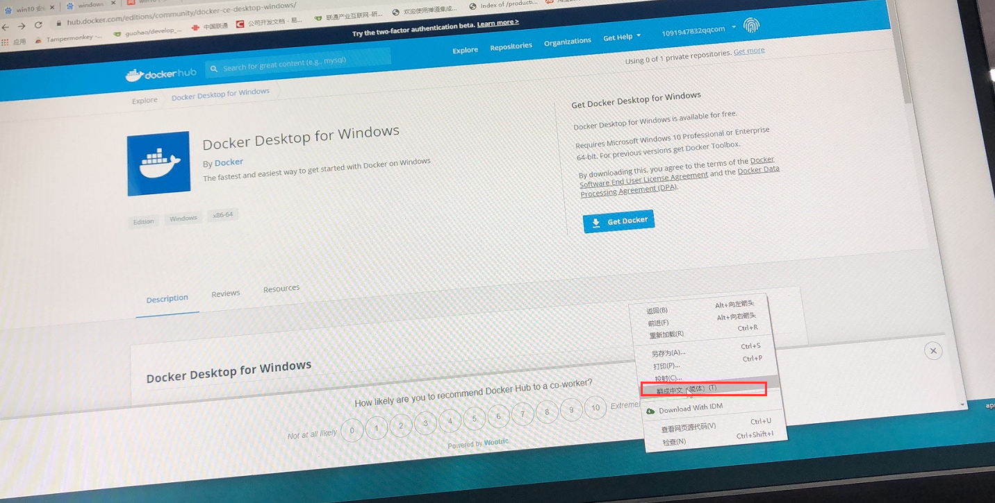 https://hub.docker.com/editions/community/docker-ce-desktop-windows/ 默认为英文翻译为中文