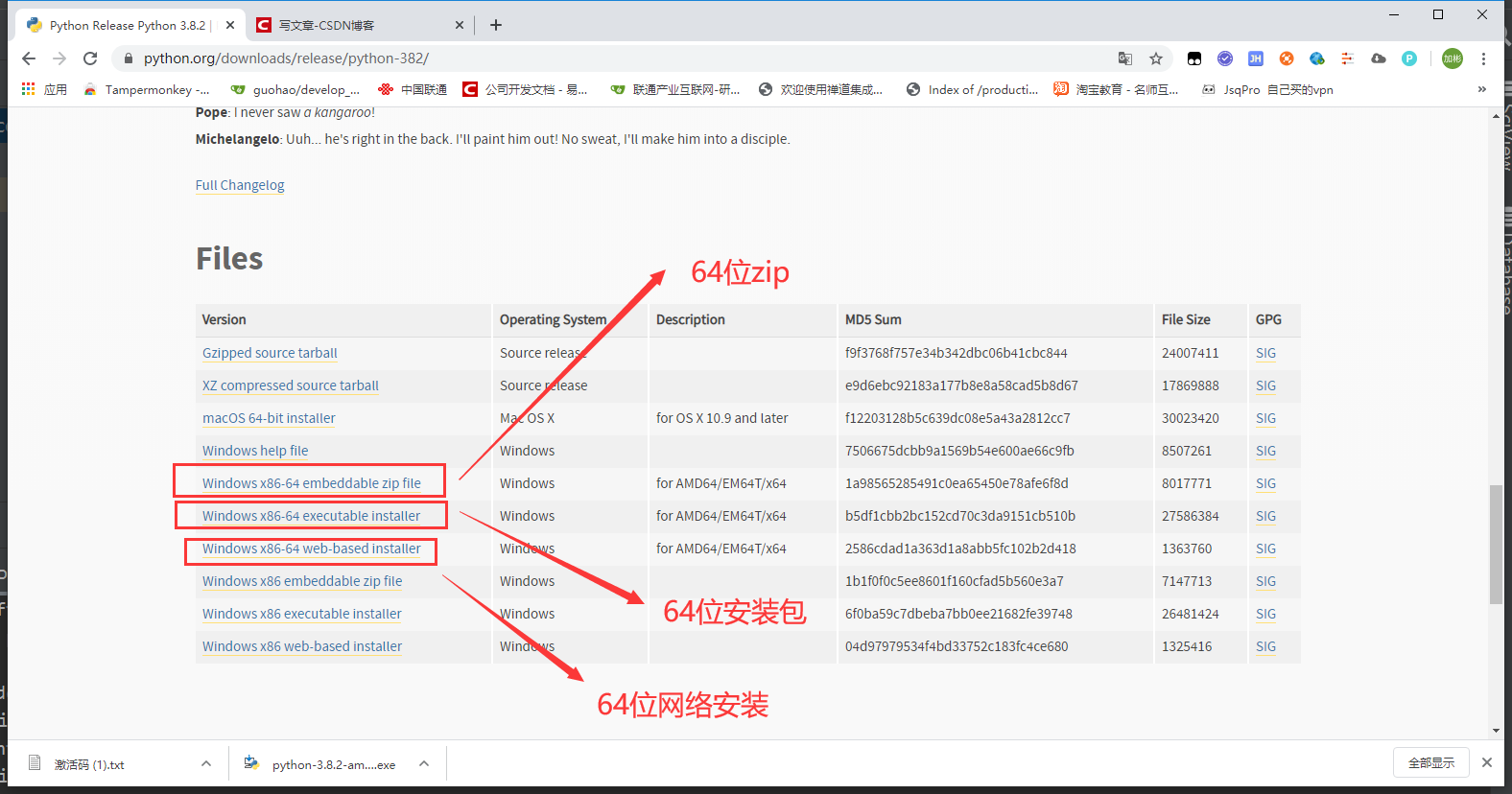 - 在下载列表中选择Window平台安装包,包格式为:python-XYZ.msi 文件 , XYZ 为你要安装的版本号。