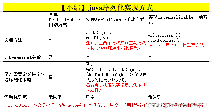 - 2种手动方式(分别实现 Externalizable, Serializable 接口);