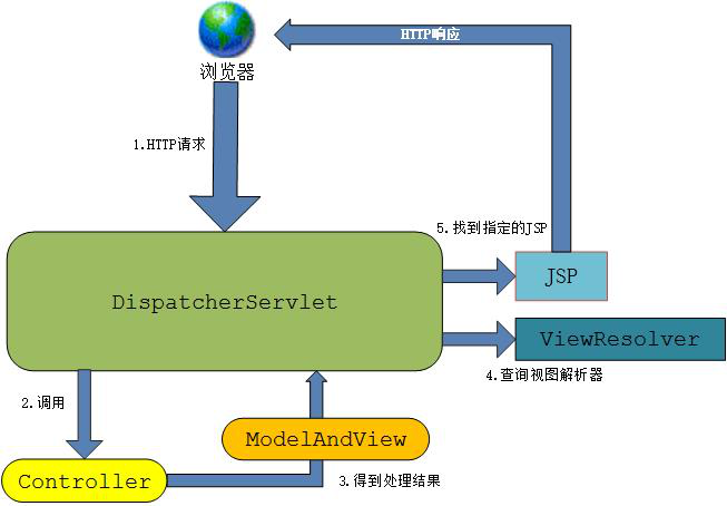 - 浏览器发出一个http请求给服务器,如果匹配DispatcherServlet的请求映射路径(在web.xml中指定),服务器将请求转交给DispatcherServlet.