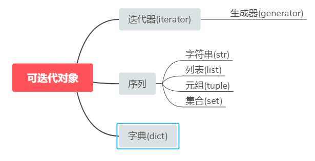可迭代对象是Python中一个非常庞大的概念,它主要包括如下三类: