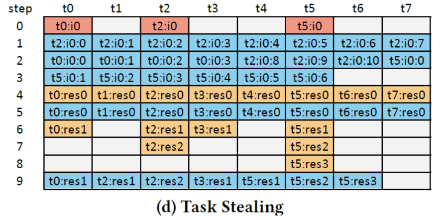 3) 最后剩下工作量比较小的线程,所有的任务拼接到一起,由整个block协作完成。
