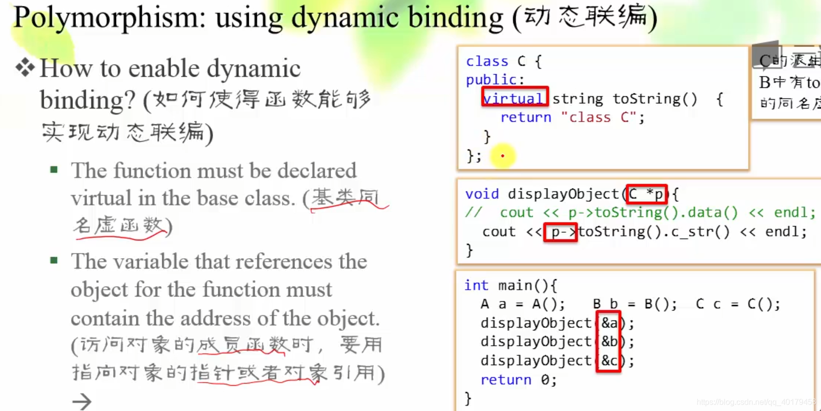 2.其本质是因为维护了一张虚函数表,虚函数表以链表的形式存在。每个结点存储了对象指针的地址,通过一个指针进行遍历索引。