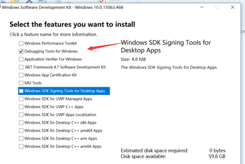QTCreator断点调试需要下载SDK,Windows的SDK下载地址,只需要安装勾选如下的