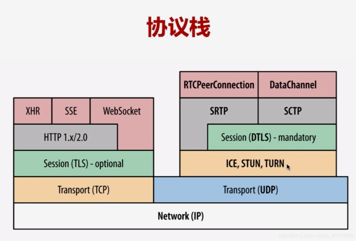 浏览器协议栈(左图传统HTTP 右图WebRTC)