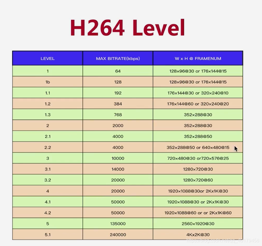 Level是对视频的描述,Levrl越高,视频的码率,分辨率,fps越高