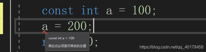 const ,表示不变的意思,例如const int a =100 ; 其变量a存储在内存常量区,不会被其他对象修改。