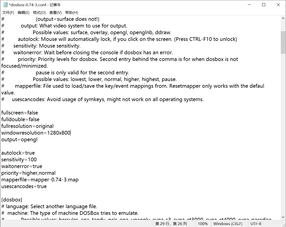 如果界面太小,也是在这个文件下,更改成windowresolution=1280x800