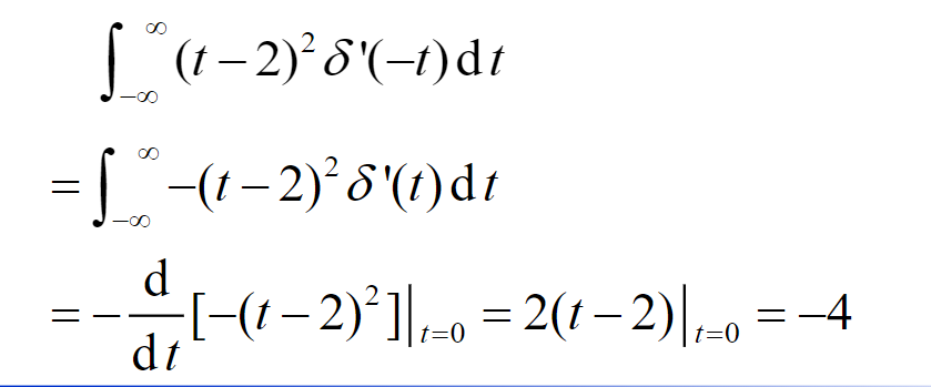 1.前面的式子在t→0t_\rightarrow0t→0极限为2,与后面冲激函数一作用,不难得到为结果2