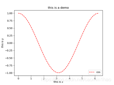 plt.plot(X, C, 'r--', label = 'cos')# 显示x、y坐标代表的含义