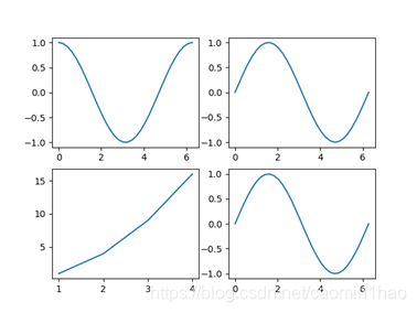 plt.plot([1, 2, 3, 4], [1, 4, 9, 16])plt.subplot(2,2,4) #可以隔开,也可以不隔开