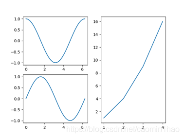 图表的整个绘图区域被分成numRows行和numCols列,plotNum参数指定创建的Axes对象所在的区域(左上角序号为1)