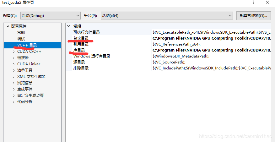 3.5.1→VC++目录。在包含目录中添加C:\Program Files\NVIDIA GPU Computing Toolkit\CUDA\v10.1\include;在库目录中添加 C:\Program Files\NVIDIA GPU Computing Toolkit\CUDA\v10.1\lib\x64。