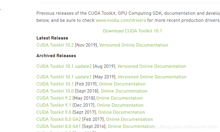 网址:https://developer.nvidia.com/cuda-toolkit-archive
